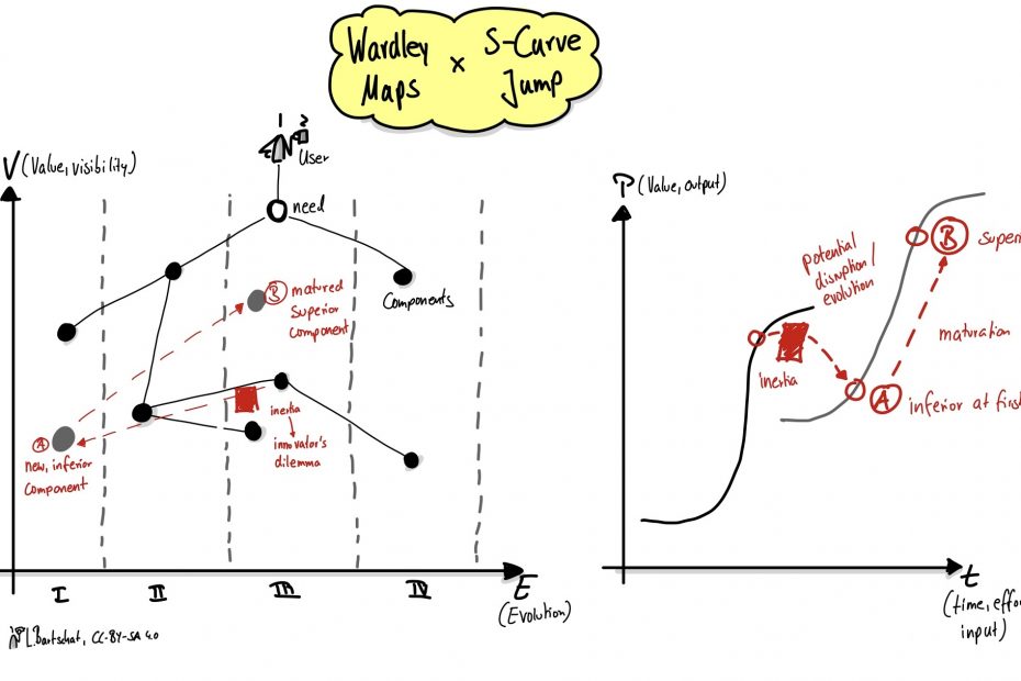 Das S-Kurven-Konzept im Innovationsmanagement beschreibt, wie sich die Leistungsfähigkeit einer Technologie im Laufe der Zeit entwickelt – abhängig von den investierten Ressourcen. Es handelt sich um einen idealisierten Technologielebenszyklus. Neue Technologien starten meist mit einem… Wardley Maps x S-Kurven-Sprung